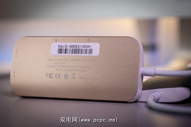 该集线器制作精良,所有连接器均牢固可靠。该集线器的背面具有精美的丝网印刷,标记了所有连接器以及基本的设备充电信息。