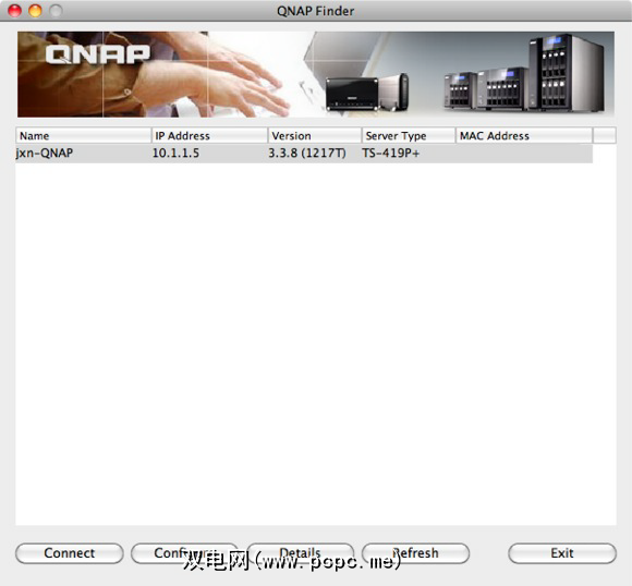 要安装驱动器,只需从前面的托架中卸下驱动器托盘,然后将驱动器拧到托盘上即可。与所有NAS设备一样,QNAP TS-419P +带有自己的仪表板/检测应用程序,该文件位于跨平台的称为QNAP Finder的CD中。安装该应用程序后,它将自动检测您网络上的任何QNAP NAS设备,并协助您登录基于Web的GUI。