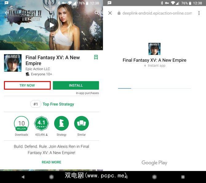 查看Play商店的“即时游戏"标签,查看哪些游戏符合条件。目前只有少量功能可使用此功能,包括Clash Royale和Words With Friends2。在应用程序页面上点击立即尝试即可直接跳转到该页面。