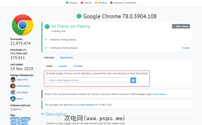 导航到Chocolatey Package网站并搜索该应用程序。请注意安装该应用程序的命令行指令。