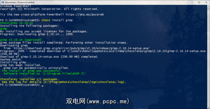 choco install gimp,这将下载该应用程序并将其安装到您的系统中,而无需执行任何操作就你而言您将在控制台本身中看到进度信息。在某些情况下,您的应用可能会显示窗口,但这是完全正常的。