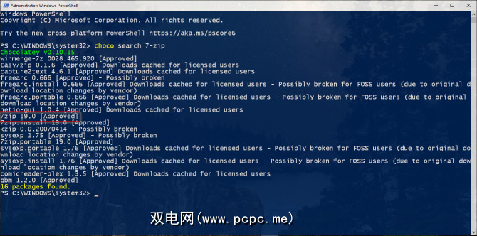 choco search 7-zip当您按 Enter 时,Chocolatey将在其数据库中搜索每个带有“ zip"字样的应用。如果有的话,您会在结果中找到它。搜索特定的应用程序需要一些练习。每当需要帮助时,请使用存储库软件包网站。