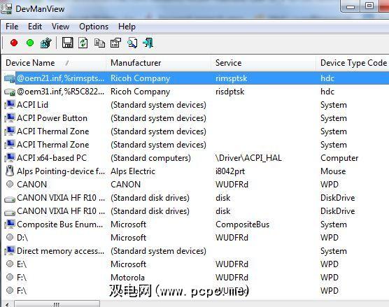 下载DevManView系统设备管理器时无需安装。您所要做的就是运行可执行文件。完成后,您会看到所有系统设备驱动器的列表,以及有关它们的更多信息,甚至可能还不可用。请确保向右滚动,因为每个驱动程序上都有很多列填充数据。
