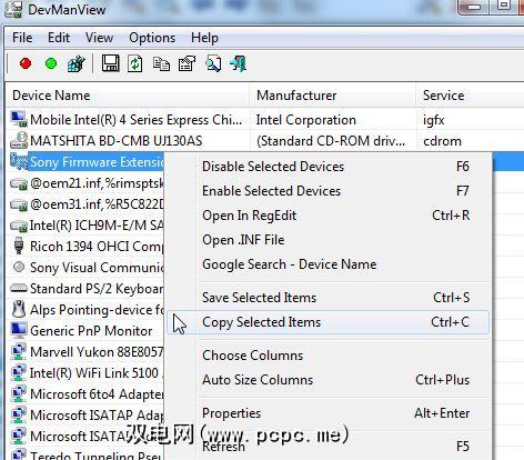 您只需单击几下鼠标,便可以对任何驱动程序执行一系列操作。右键单击任何设备,您可以立即启用或禁用它。一次选择多个设备,然后按F6或F7启用或禁用所有设备。在这里,您还可以快速访问设备INF文件,在注册表中查看设置,甚至单击“ Google搜索"以对该特定驱动程序进行即时Web搜索。