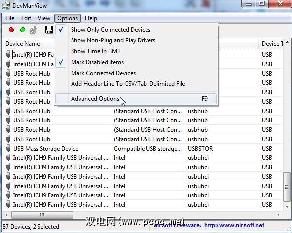 虽然主视图的结构与库存的Windows Manager并不一样,但是您可以过滤哪些设备显示在“ 选项"下。