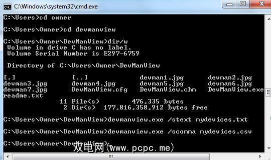 如果您喜欢使用脚本而不是使用脚本GUI,DevManView已覆盖您。在命令提示符下,您可以在设备上执行命令的完整列表,也可以使用该程序从脚本生成设备报告。例如,您可以使用/ stext,/ scomma或/ shtml参数选择设备信息的导出格式。