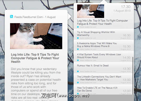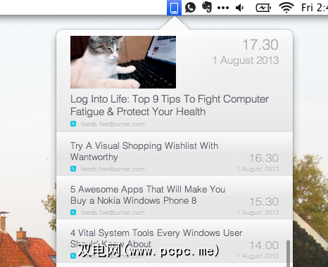 有时候,您希望按顺序阅读每篇文章,而这正是Feedly之类的高级RSS服务所针对的。但是,有时候,您只是想浏览头条新闻,并可能阅读几篇文章,而Fresh Feed就是完美的选择。它位于菜单栏中,因此只需单击一下即可。即使打开它也不会占用很多屏幕空间。您可以滚动浏览标题,单击任何看起来有趣的内容,然后忽略其他所有内容。