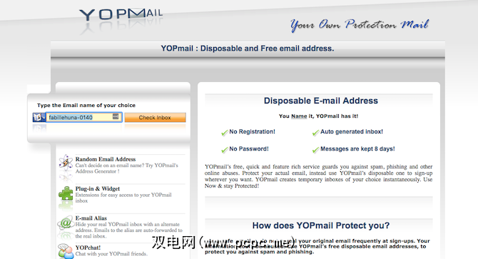 您可以在任何地方使用YOPmail要求输入电子邮件地址,但不想使用您的真实帐户。将其用于要求您注册的网站或正在测试的要登录的应用程序,这样您就不会被新闻通讯淹没,也不必在Gmail中处理垃圾邮件。