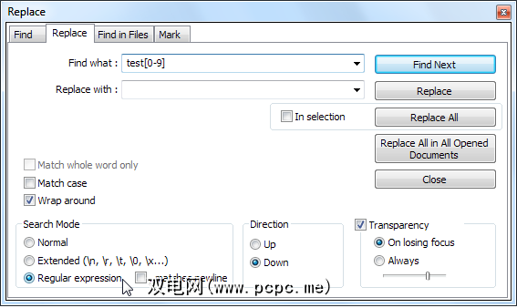 Notepad ++也支持正则表达式。正则表达式是高级用户的强大工具,可以匹配和修改几乎可以想象的任何类型的文本。例如,正则表达式 [0-9] 将匹配0到9之间的所有字符。如果您的文件中包含 test1,test2,和 test 3,您可以搜索 test [0-9] ,并且正则表达式将匹配 test1 , test2 ,和 test3 –但不是 testb 。