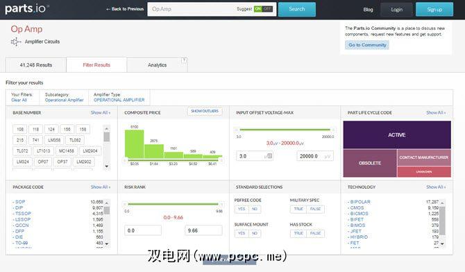 Octopart是另一个垂直搜索引擎,该引擎汇总了领先的分销商(如Allied Electronics,Digi-Key,Mouser和Newark InOne)的电子零件数据。两千万个零件需要挖掘很多。您可以使用通配符,短语匹配和布尔运算符之类的高级搜索功能。将所有可用的过滤器缩小到正确的搜索范围。