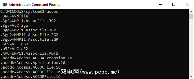 assoc .ext用文件类型替换 ext 。例如,输入 assoc .jpg ,您将看到哪个程序打开了JPG文件。