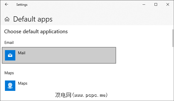 在这里您可以设置和使用默认应用程序来处理电子邮件,地图,音乐等。单击该应用程序以从列表中选择其他应用程序。