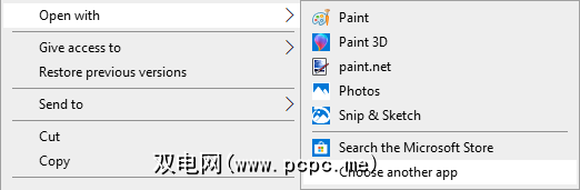 您可以直接从文件资源管理器更改文件类型关联。为此,右键单击文件,然后将鼠标悬停在打开位置上。