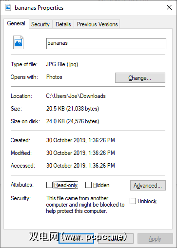 将打开一个包含该文件详细信息的新窗口。 文件类型会告诉您文件的文件扩展名是什么。 打开方式会告诉您它将在哪个程序中打开。