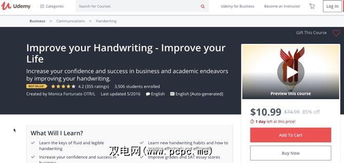 Udemy的收视率很高的4小时课程名为“改善笔迹–改善生活"。,我还没有我自己参加了这门课程,但是许多以前的学生在上完手写课后都引用了“即时改进"。该课程的价格通常为75美元,但我经常看到高达85%的折扣,所以值得您睁大眼睛。