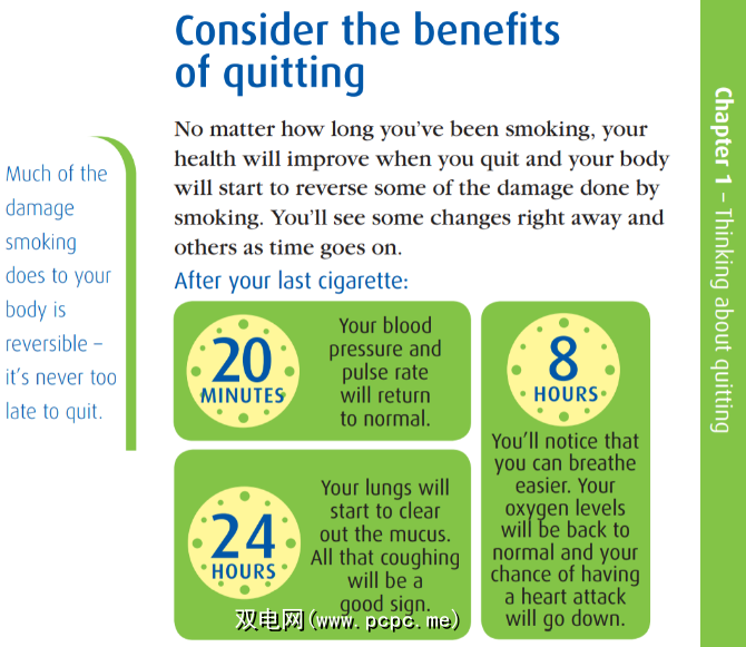 加拿大癌症协会有一个免费提供的大量电子书和手册,涵盖了吸烟,吸烟和戒烟的各个方面。以下是根据您的需要应检查的内容: