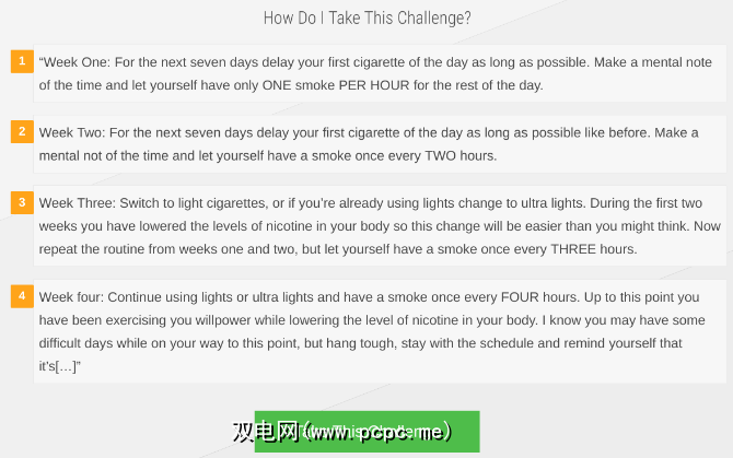 由用户设置的28天挑战分为四个星期的可行步骤,使您轻松退出。首先,您要延迟第一根烟,每小时吸一支烟,然后每两小时吸一支烟,然后逐步上升。引用每部励志电影的格言,这是一场马拉松,而不是短跑。并且让其他用户组成的社区进行相同的挑战显然可以帮助您保持动力。