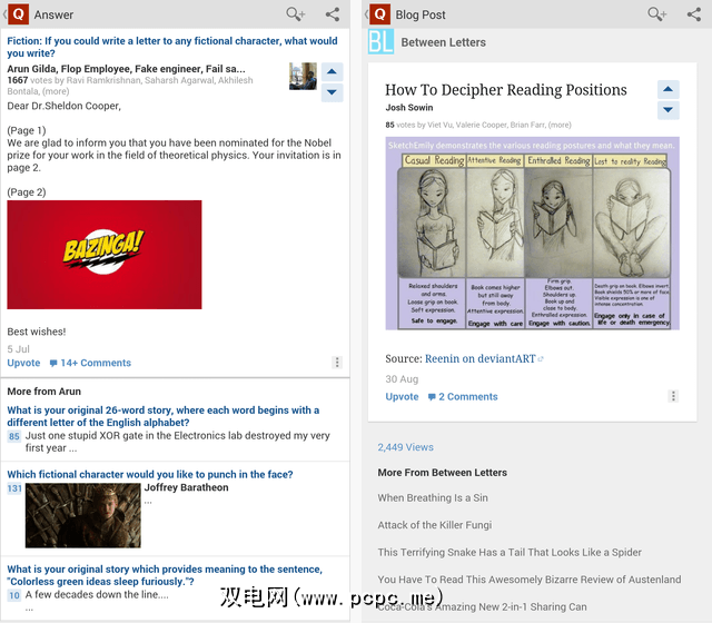Quora应用程序的这一部分确实具有Reddit的感觉-如果查看我们对Reddionic的评论,您会明白我的意思。您可以浏览当前问题,并快速浏览同一用户的其他内容。您可以花大量时间直接从一个问题跳到另一个问题,而无需浏览浏览器。