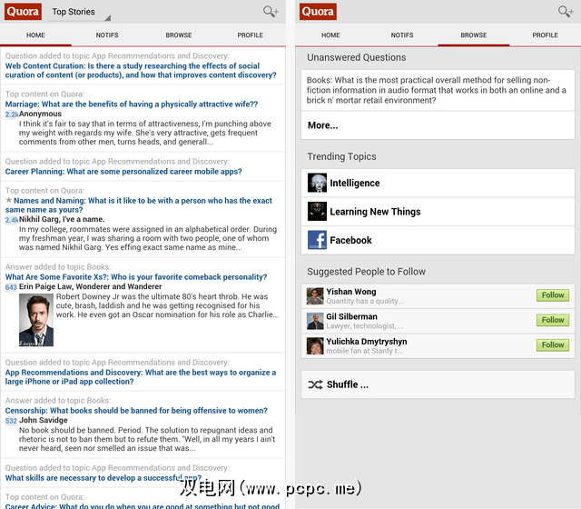 一旦您遵循了很多主题,就该开始了开始浏览有趣的问题或博客项目(是的,Quora可让您发布博客项目,而不仅仅是问题)。