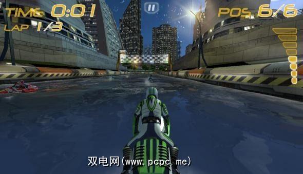 选择七个不同的摩托艇之一,并通过12个不同的路线进行比赛,这是一个未来派城市景观的一部分(实际上有六个独特之处)轨道,您也可以反向播放。但是,反向轨道中有一些不同的路线)。水不仅停滞不前– Riptide GP通过波的移动提供逼真的水物理学。越过波浪的波峰,您将飞向空中一会儿。