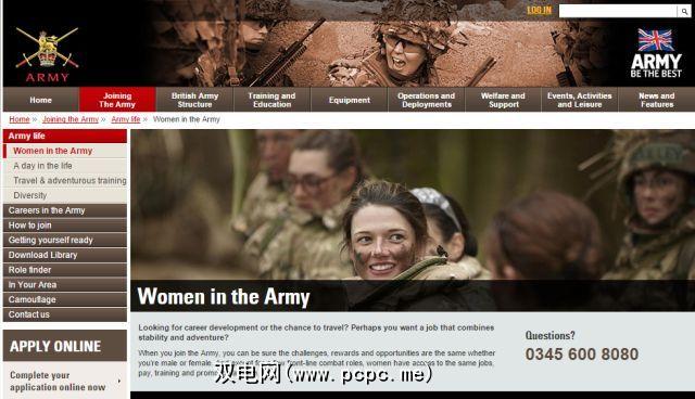 对于英国的女性而言,陆军网站上有一个类似的页面,名为“陆军中的女性"。