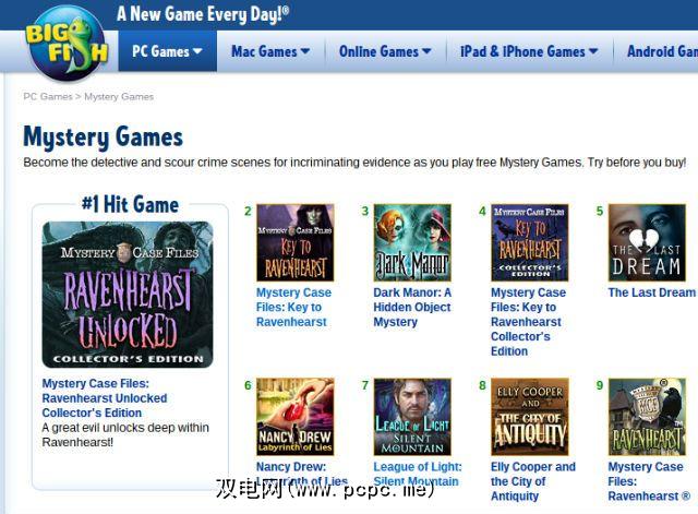 当然,您不仅需要依靠在线游戏,只需访问诸如Big Fish Games之类的游戏下载网站,该网站就可以为PC,Mac,移动和在线游戏提供各种各样的游戏,您的孩子可以免费尝试并购买并下载。