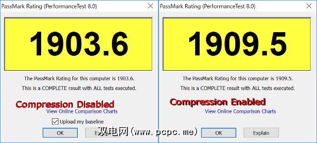 但是启用RAM压缩确实占用了很大一部分您的计算机的处理能力?我使用PassMark的PerformanceText进行了基准测试。