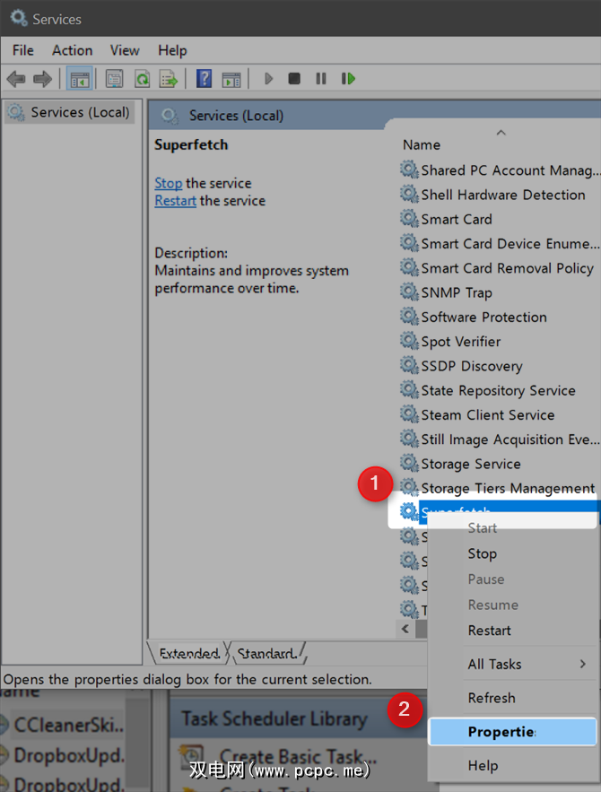 首先,按Windows键+X。然后按R。您应该看到 Windows运行对话框。在文本字段中键入“ Services.msc"(不带引号),然后按Enter。您应该看到所有Windows服务的列表。找到 Superfetch ,然后在其上右键单击。然后选择属性。