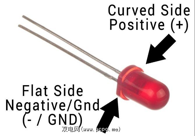 设置电阻的方法并不重要,但这很重要使LED正确运转。幸运的是,很容易分辨出哪一面是哪一面。