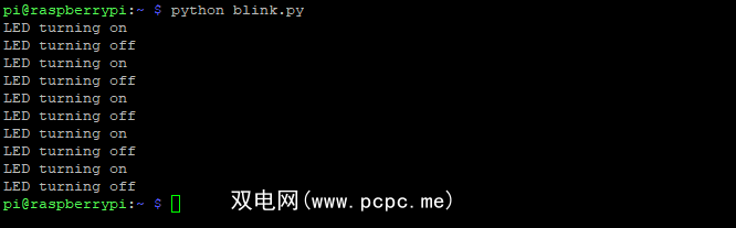 python blink.py您应该在屏幕上看到LED闪光灯和打印功能。
