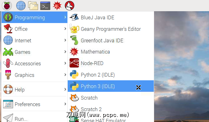 如果您在桌面模式下使用Raspberry Pi,请打开顶部的应用程序菜单屏幕左侧,并导航至编程> Python 3(IDLE)。这将打开Python shell。如果使用的是SSH模式,则本文稍后会提供说明。
