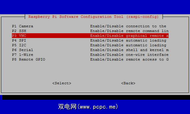 sudo raspi-config,然后使用箭头键浏览到接口选项> VNC ,然后选择是。