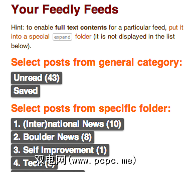 从这里开始,该过程类似于我们之前的文章,该文章关于如何使用该服务将RSS feed作为EPUB下载:您可以选择抓取所有您的供稿,特定文件夹甚至单个供稿。您还可以选择是否在Feedly中将下载的项目标记为“已读"。