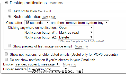 Checker Plus for Gmail是另一个Chrome应用程序,但它具有自己的通知和一些漂亮的功能。