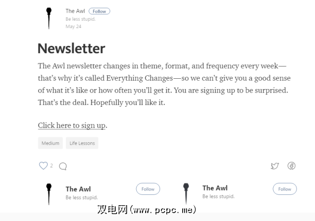 如果您喜欢惊喜,那么您真的会挖Awl。通过对现代随机性的研究,锥子每周都会改变主题,格式和频率。这就是为什么他们称其为“一切都在变化"。