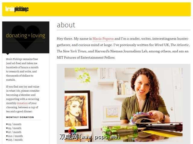 由传奇的玛丽亚·波波娃(Maria Popova)撰写和撰写,《大脑采摘》可能是有关媒体,书籍,历史,文化,和互联网上的随机事物。这是玛丽亚(Maria)对自己和时事通讯背后背景的描述。