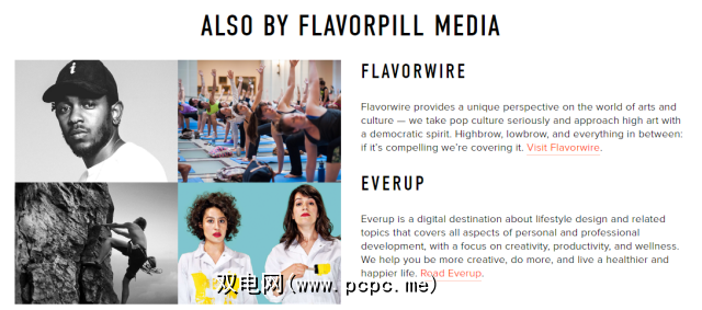 Flavorwire是您每周/每天的流行文化剂量。 Flavorwire的多个新闻通讯选项来自一个名为FlavorPill的单独网站,其内容涵盖了艺术,书籍,音乐,电影,甚至偶有奇怪的事件或最新的互联网时尚。