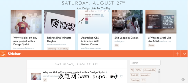 侧边栏非常适合著名的设计资源,以及流行的设计时事通讯。它很简单,并且具有当天的前五名设计资源精选。