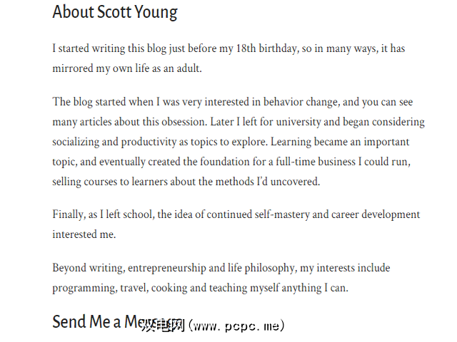 斯科特·杨(Scott Young)着有关于个人生产力的有趣时事通讯,重点是“如何学习"。 Scott的博客,新闻通讯员是数千名文字,程序员和旅行者的新闻工作者,作家和出版商,旨在记录他所学的所有知识(以蒂姆·费里斯风格)。