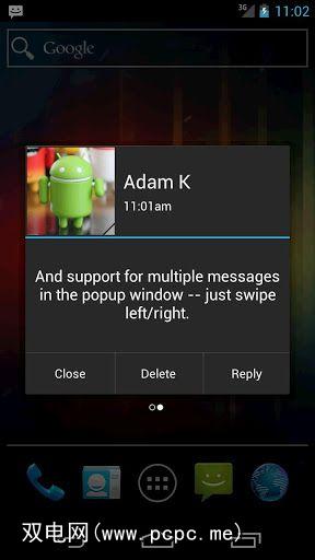 如果您担心隐私,但仍然希望弹出消息,则SMS Popup会自动将其读出。让您隐藏消息详细信息,例如发件人或消息内容。