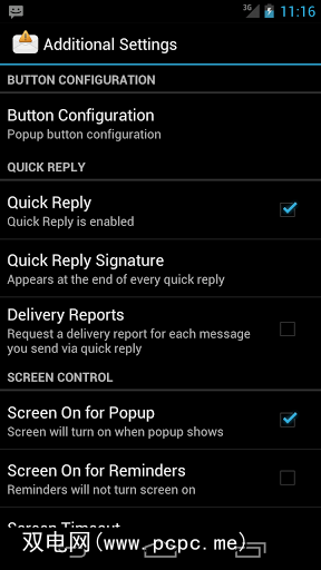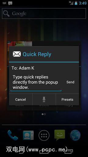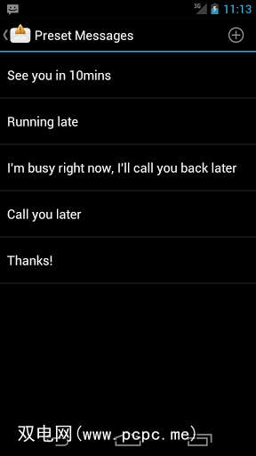 如果您经常以相同的消息答复,则SMS Popup使您可以设置一些预设消息以供选择。例如,如果您经常迟到,“ 我现在要去那里"可能会派上用场。