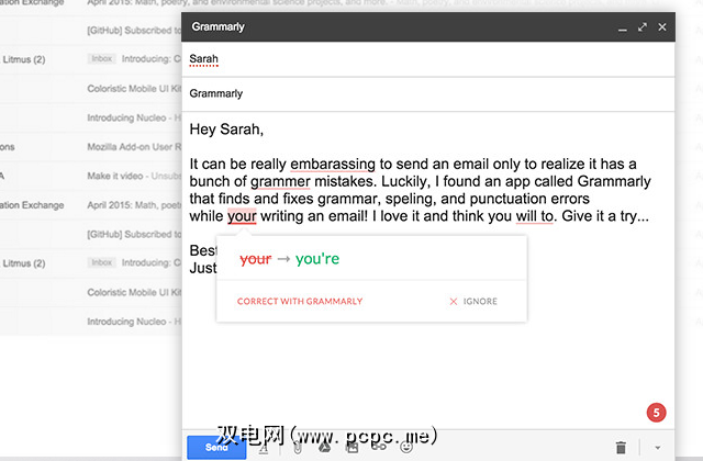 语法(Chrome,Safari,Firefox)是功能强大的免费拼写和语法检查浏览器扩展程序。当您键入电子邮件,Facebook更新或博客文章时,扩展名将突出显示不正确的单词或句子。只需将鼠标悬停在这些要点上即可找到正确的建议。