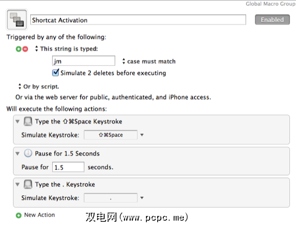 由于我非常依赖计算机自动化程序,例如Hazel and Keyboard Maestro,我可以利用一些黑客手段,使我也可以在计算机上导航并自动或通过几次按键激活某些任务。例如,使用Keyboard Maestro,我创建了一个宏,该宏为Shortcat执行了三步激活过程。我可以简单地键入“ jm",宏将为Shortcat键入键盘快捷键,再加上“。"。