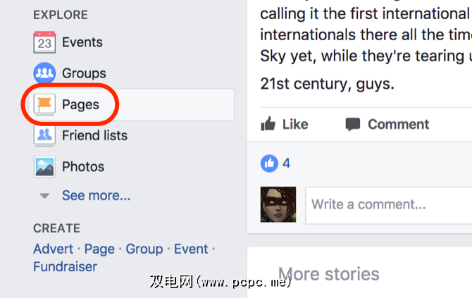 开始的地方:单击左侧边栏中的页面链接,前往Facebook的“喜欢的页面"屏幕。<