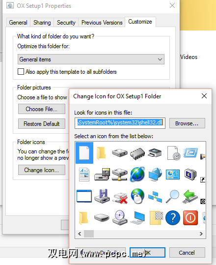 从那里,您可以选择吨文件夹的不同图标。选择一个看起来像系统文件的文件,然后单击应用。