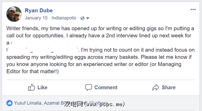 我最近失去了在线工作,并立即向我值得信赖的Facebook朋友求助,以获取有关任何工作机会的提示和建议。我还更新了我的LinkedIn个人资料。