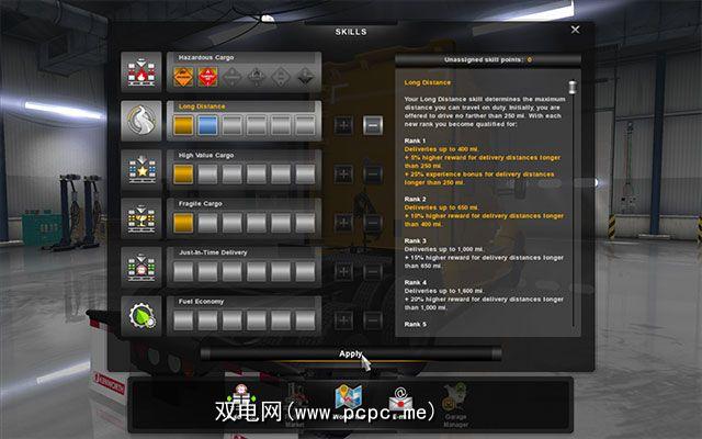 但是 ATS 不仅仅是开卡车,还有很多。开发人员SCS软件还添加了RPG元素,以使您渴望更多。完成工作,发现位置,甚至将卡车停在正确的位置都会为您带来XP,从而使您的角色升级。每次升级时,您都会解锁一项技能,从而为您提供更多不同的工作,并有机会赚取更多的钱。