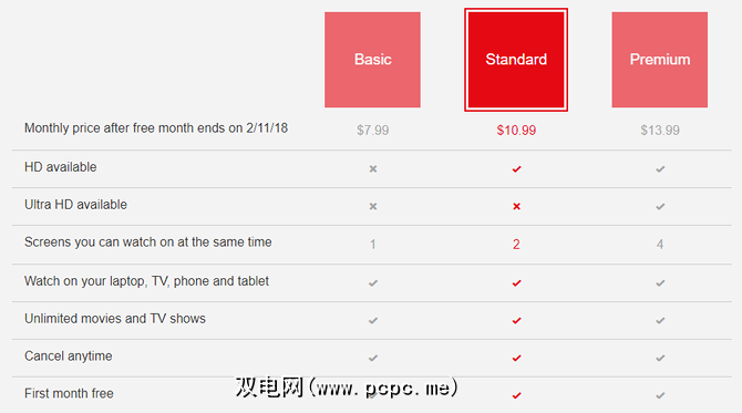 如果您想同时在两台设备上同时播放高清流媒体,那么您将需要标准套餐。每月仅需$ 11,它的价格就比一张电影票还便宜,而且可以解锁整个高分辨率故事片库,供您随时随地欣赏。