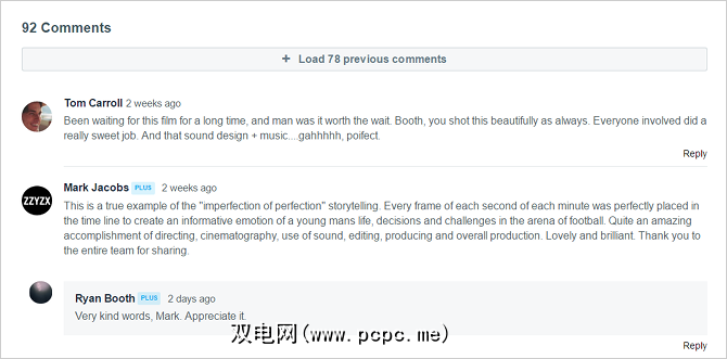 关于Vimeo,这是一个完全不同的故事,Vimeo的评论者往往更具建设性,成熟,有见地。作为创作者,这可能会令人耳目一新。