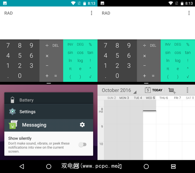 在Android Nougat中,长按“最近"按钮会将显示屏分成两半-您当前的应用程序在左侧,应用程序切换器在右侧(在横向模式下)。您要做的就是循环浏览这些最新应用程序,选择所需的应用程序,然后您将获得分屏多任务处理。看起来有点像Windows 8的快照功能。遗憾的是,由于开发人员需要对其应用程序和游戏进行一些更改以支持该功能,因此该功能还无法全面发挥作用。